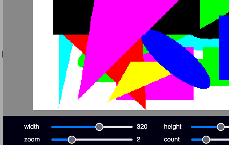 Experimenting with pixel rasterization in canvas, and put this little generator together. Fun to tweak the knobs and look for pleasing composition! read more